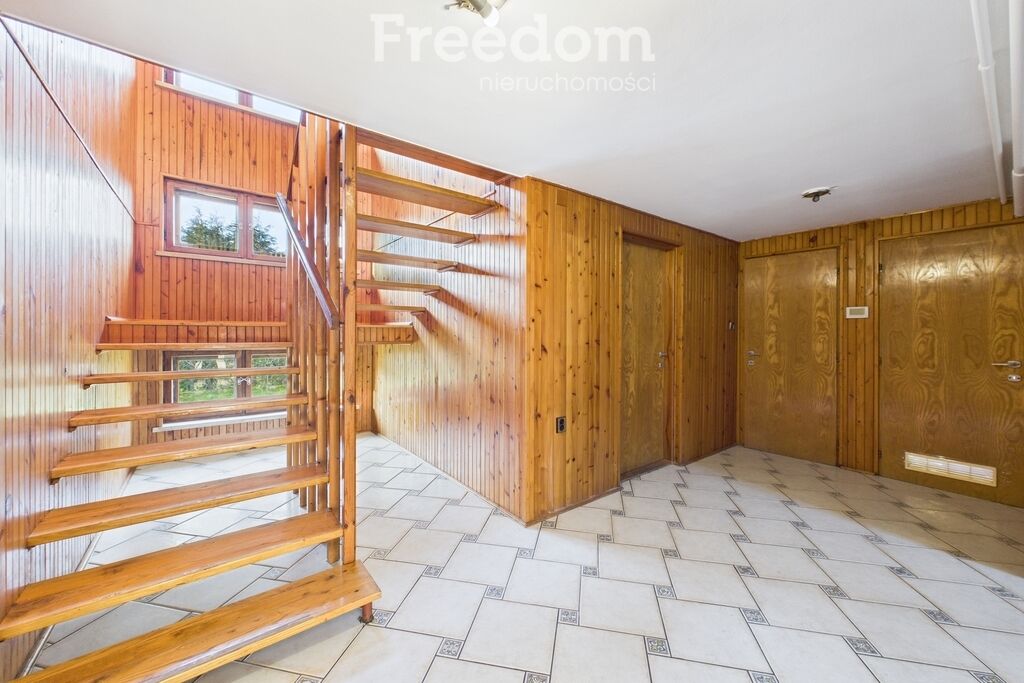piętro prowadzą drewniane schody podwieszane. Z przedpokoju (9.8m2)