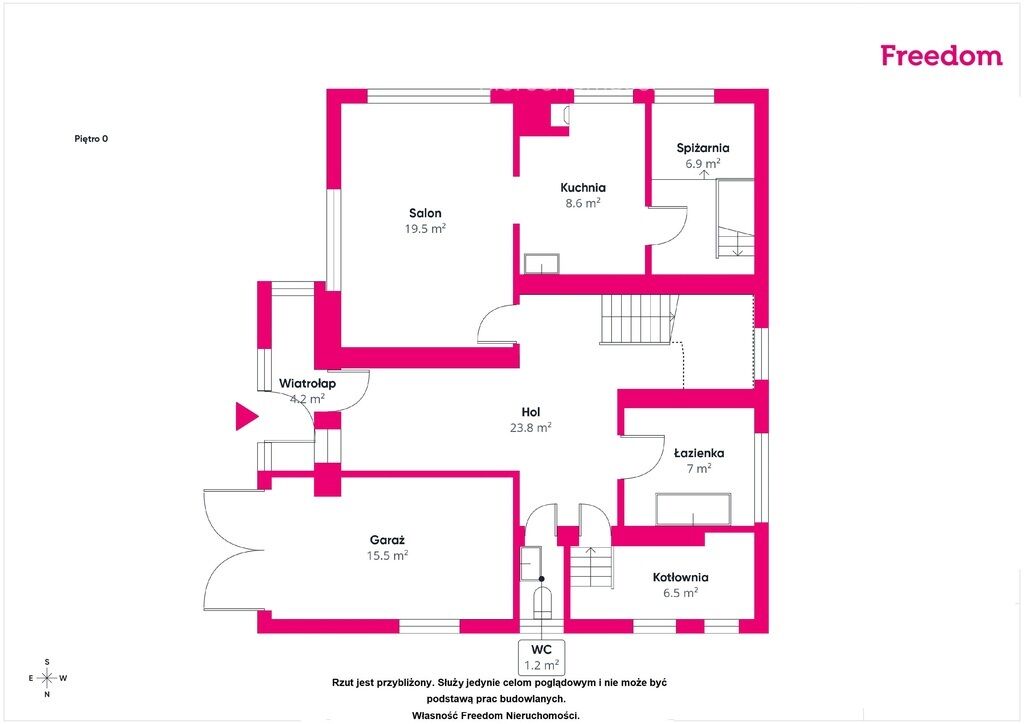 wejście do WC (1.2m2) i kotłowni (6.5m2), a na wprost do jasnej