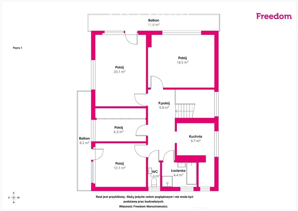 kolejnego pokoju (18.5m2) z dużym balkonem od strony południowej. Z