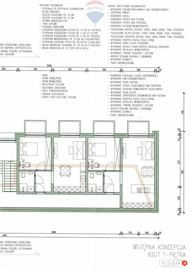* adaptację kamienicy na 5 lokali mieszkalnych o powierzchni od 35 do