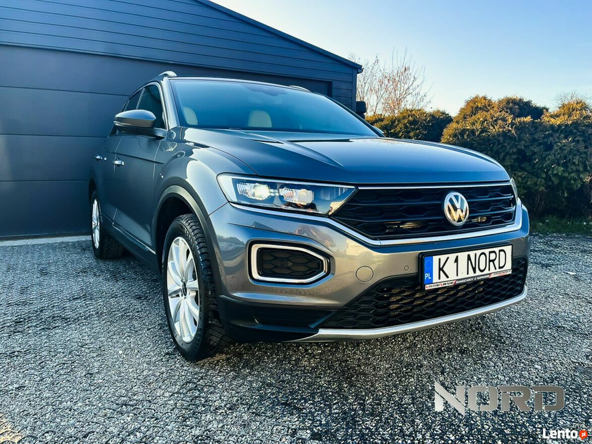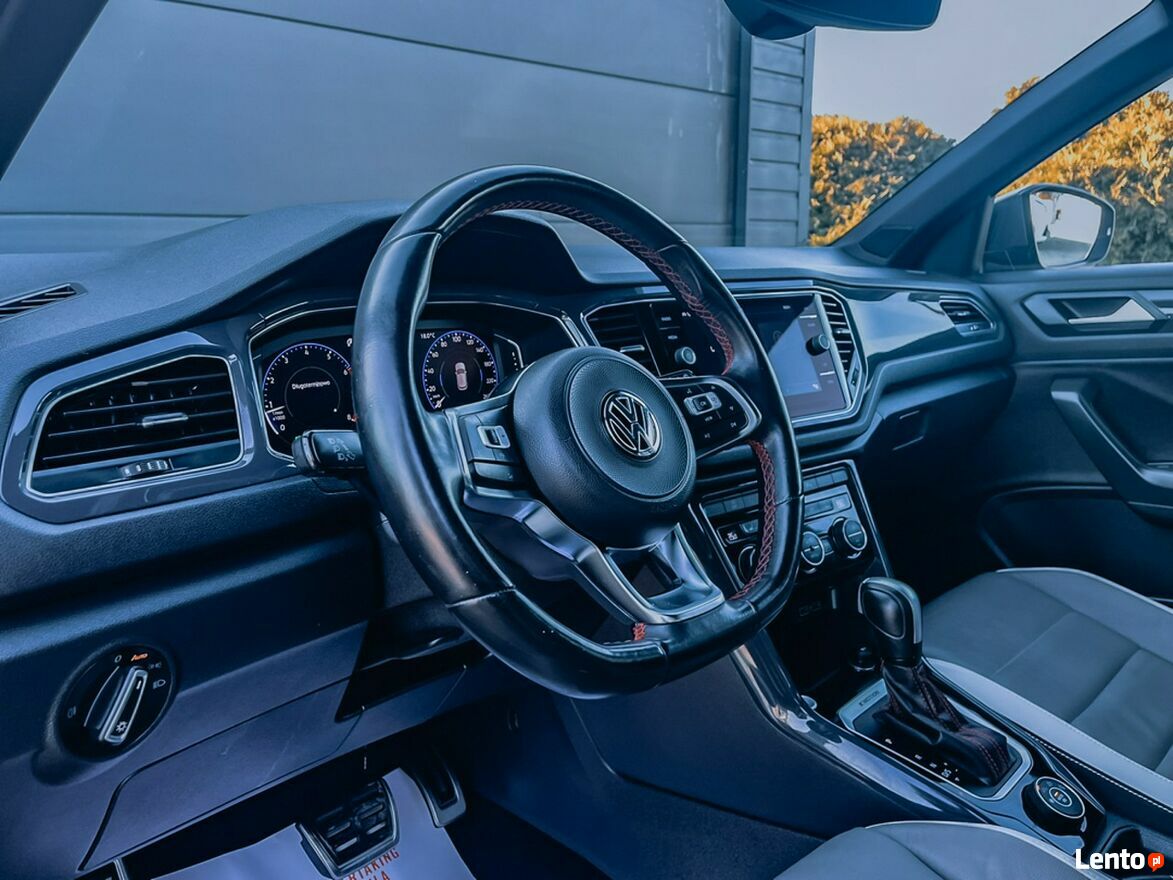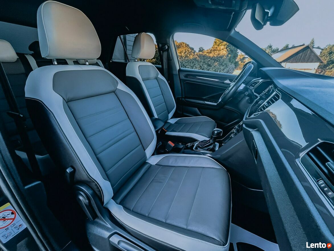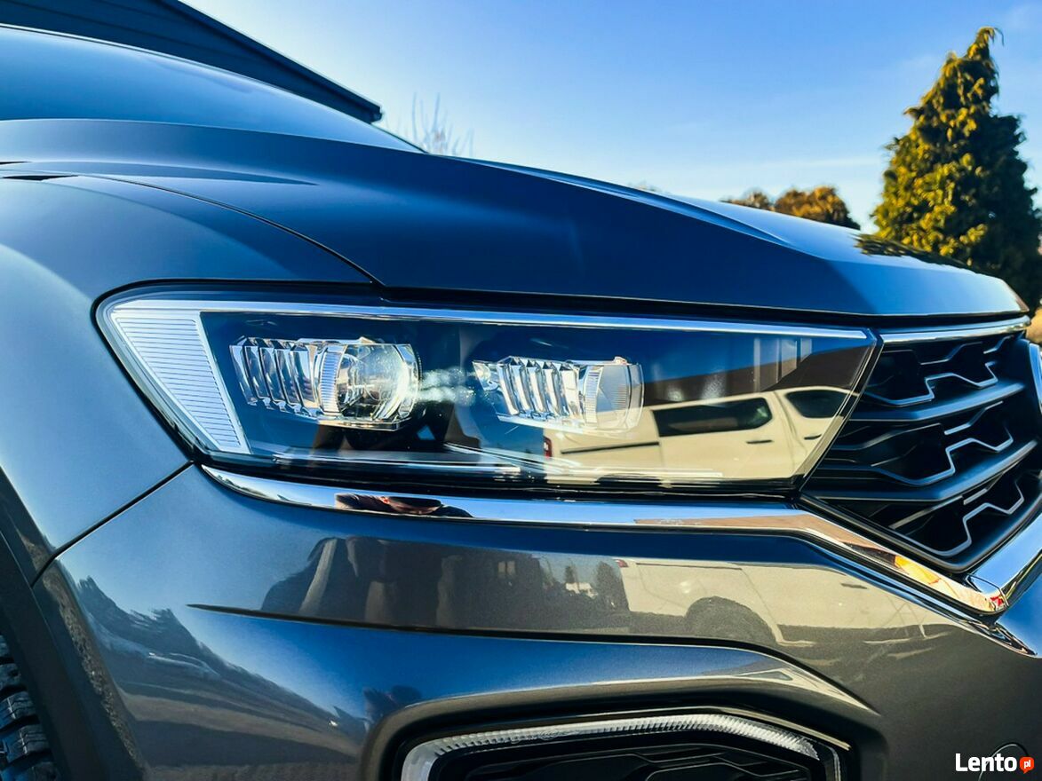 T-Roc wyróżnia się nowoczesnym i wyrazistym designem. Charakterystyczna linia nadwozia, duży grill oraz pełne oświetlenie LED podkreślają jego dynamiczny wygląd. Wnętrze utrzymane jest w eleganckim stylu, oferując wysokiej jakości materiały wykończeniowe, skórzaną tapicerkę oraz ergonomiczne fotele z funkcją podgrzewania.