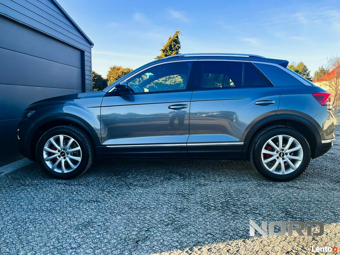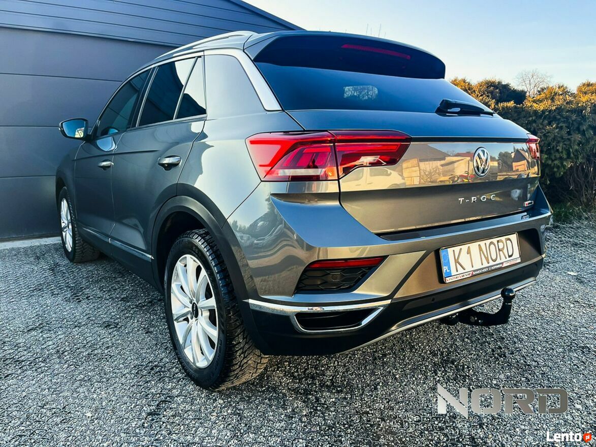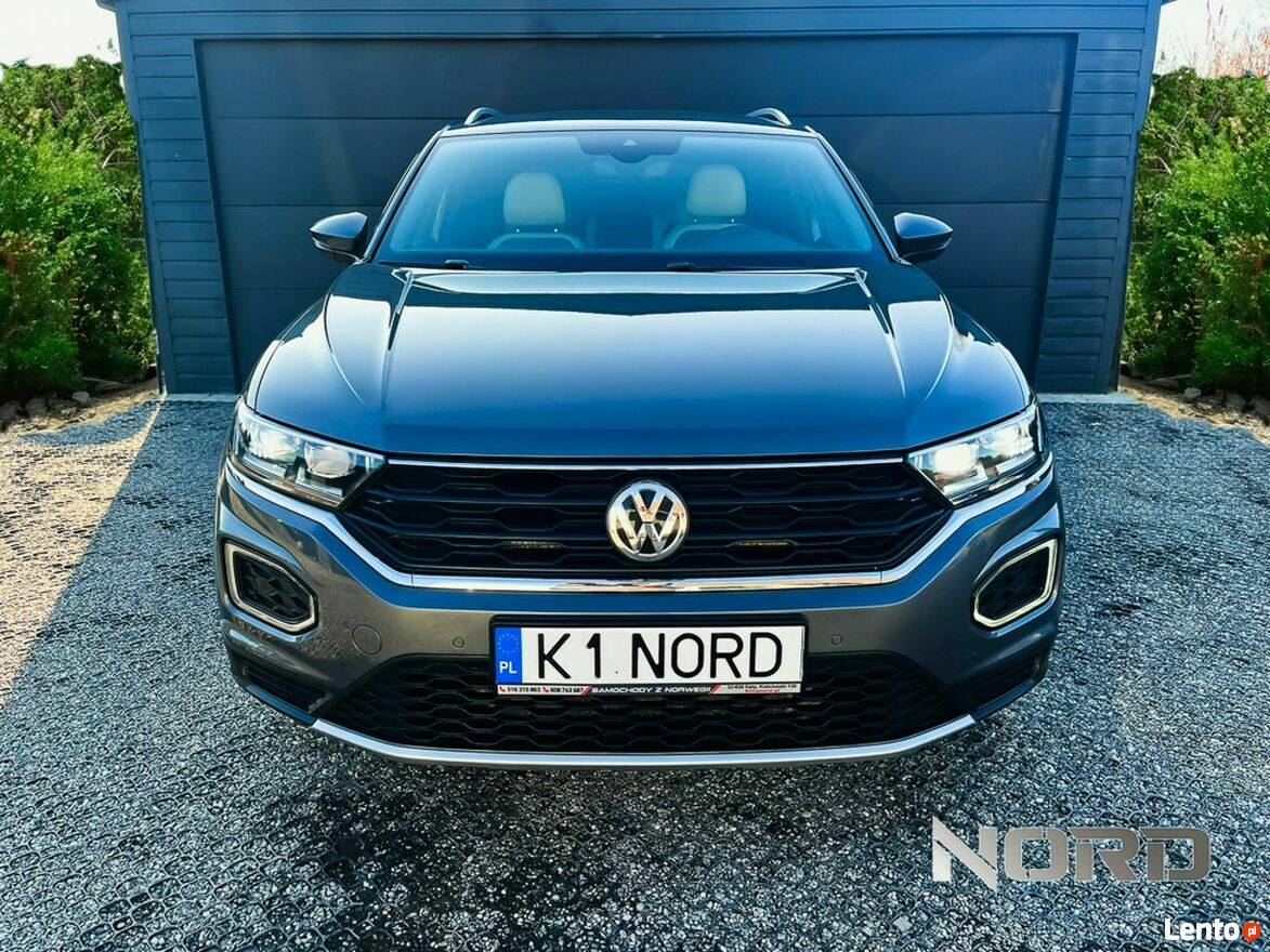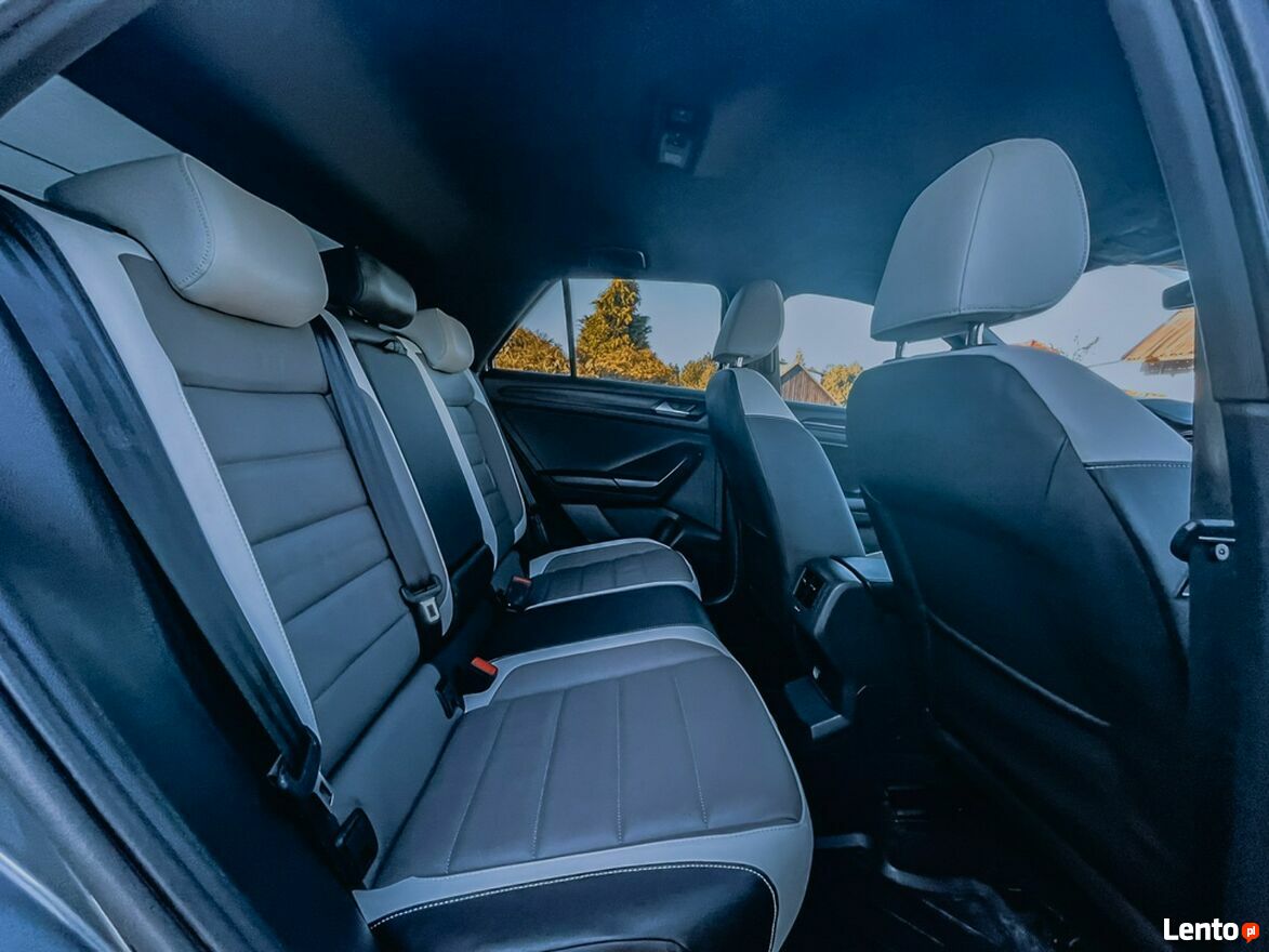 T-Roc wyróżnia się nowoczesnym i wyrazistym designem. Charakterystyczna linia nadwozia, duży grill oraz pełne oświetlenie LED podkreślają jego dynamiczny wygląd. Wnętrze utrzymane jest w eleganckim stylu, oferując wysokiej jakości materiały wykończeniowe, skórzaną tapicerkę oraz ergonomiczne fotele z funkcją podgrzewania.